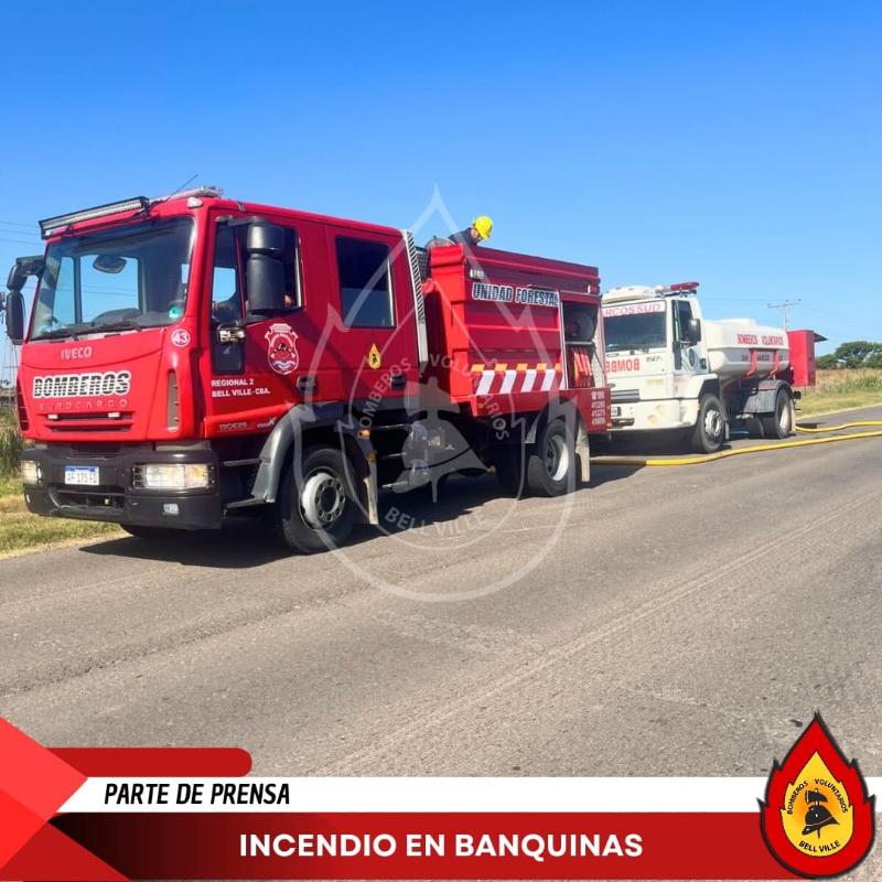 Durante la tarde del jueves, Bomberos Voluntarios de Bell Ville acuden a la Ruta N°9 (km 498-490) para controlar un incendio forestal.