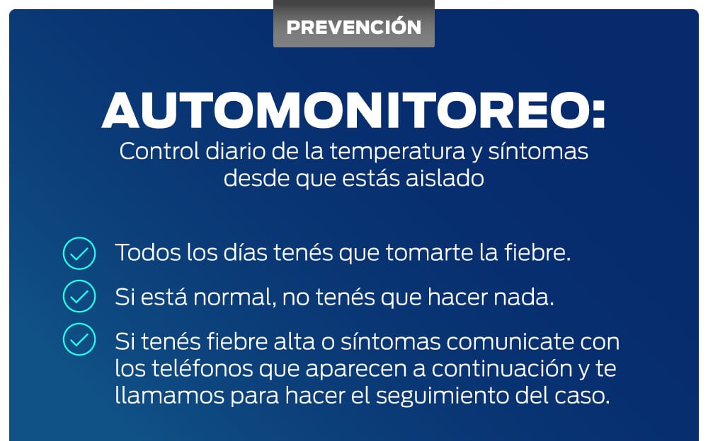 - Si sos paciente POSITIVO, nuestro personal de salud se comunica diariamente para controlar tus signos y síntomas.