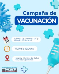 Noetinger: Campaña de Vacunación “Fiebre hemorrágica argentina” noticias 1 abril, 2025Triple Media La municipalidad de Noetinger informa a la comunidad el cronograma de vacunación contra Fiebre hemorrágica argentina. Hospital Centro de Salud Malvinas Argentinas jueves 03, viernes 04 y sábado 05 de abril. 7:00 a 19:00 hs