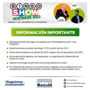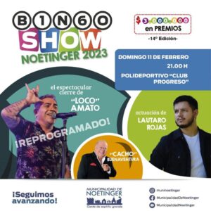 La Municipalidad de Noetinger invita a toda la región al tradicional BINGO SHOW