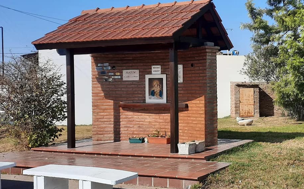En la plazoleta de la virgen de Schoenstatt del barrio “Mirador del Este” se colocaron cercos perimetrales, y se realizaron trabajos de pintura en los bancos y la gruta, además de incorporar iluminación.