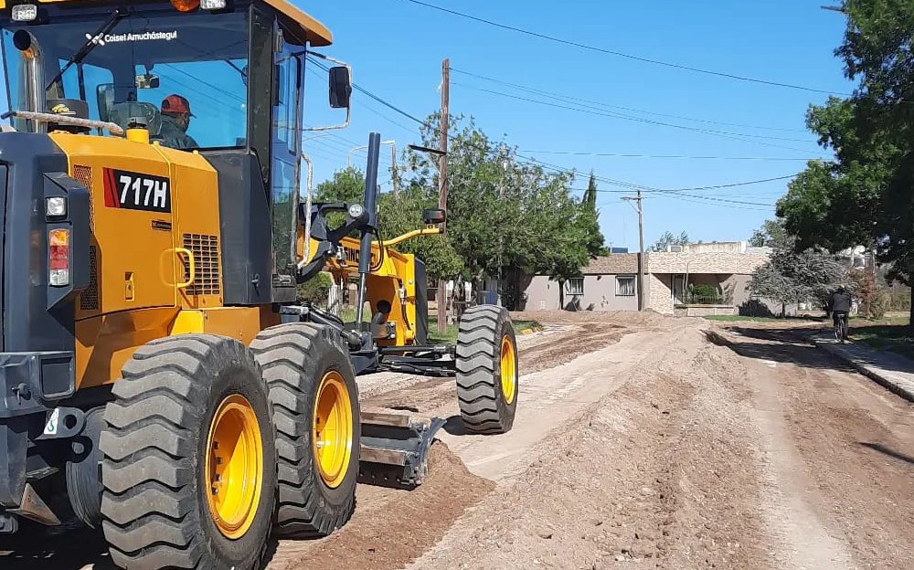 La nueva motoniveladora ya comenzó a trabajar preparando las calles que se van a pavimentar con hormigón.