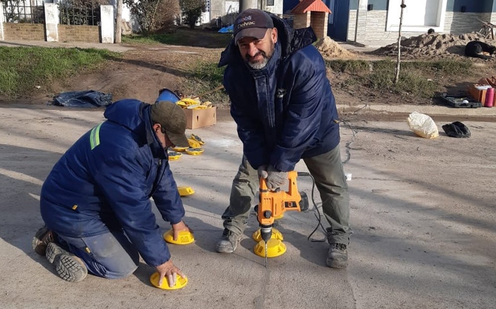 Personal del área de Tránsito en conjunto con personal de maestranza de la Municipalidad de Noetinger, colocaron reductores de velocidad sobre calle Rivadavia.