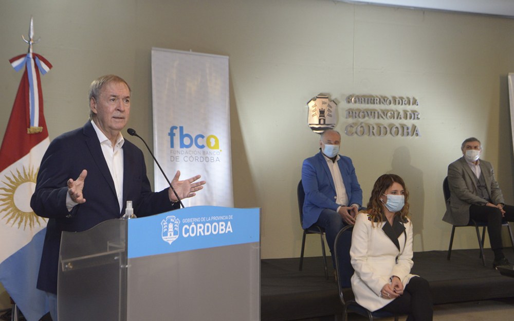 El gobernador, Juan Schiaretti, junto a la presidenta de la Fundación del Banco de Córdoba y ministra de Promoción del Empleo y de la Economía Familiar, Laura Jure, presentó este martes una nueva línea de créditos sin interés destinada a pequeños salones de fiestas sociales e infantiles, uno de los sectores afectados por el aislamiento social, preventivo y obligatorio. Esta iniciativa forma parte de un conjunto de medidas que viene impulsando el Gobierno provincial para aliviar la economía de distintos sectores en el actual contexto de pandemia.