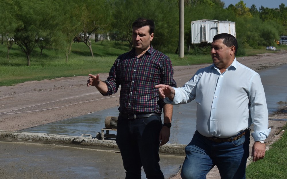 El Intendente Edwin Riva junto al Director de Obras y Servicios Públicos Mariano Calamante recorrieron las obras de pavimentación de la calle Woodgate, entre Suipacha y Enrique Cherri.