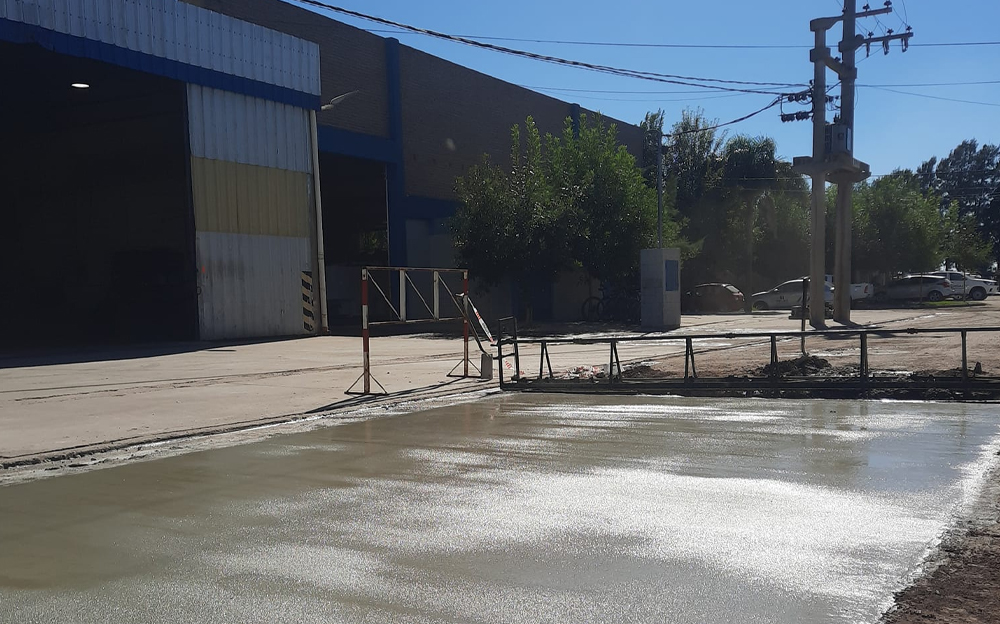 La obra de pavimento de un tramo cercano a la planta fabril de Av. Tomás Araus se realiza conjuntamente entre el municipio de Noetinger y la empresa Piersanti.