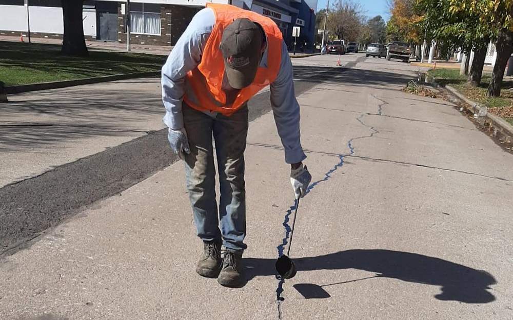 Comenzaron los trabajos de toma de juntas en calles circundantes a Plaza 9 de Julio de la localidad.
