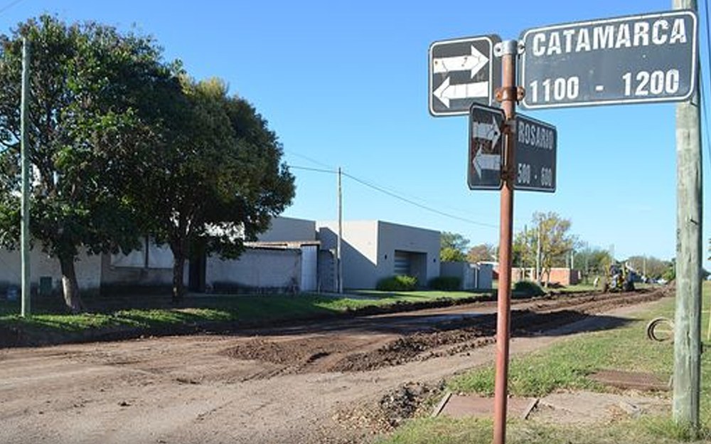 La Municipalidad de Corral de Bustos Ifflinger inició la obras de cordón cuneta y nuevos desagües sobre calle Rosario entre Catamarca y Rioja.