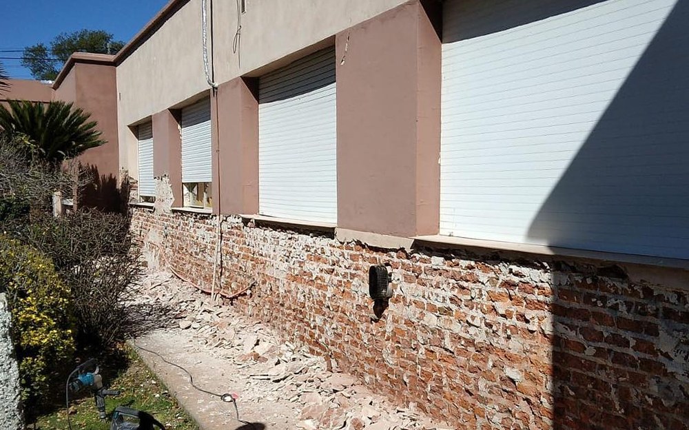 Demolición y revoque grueso alisado en el frente de la Escuela Primaria Jose Maria Paz.