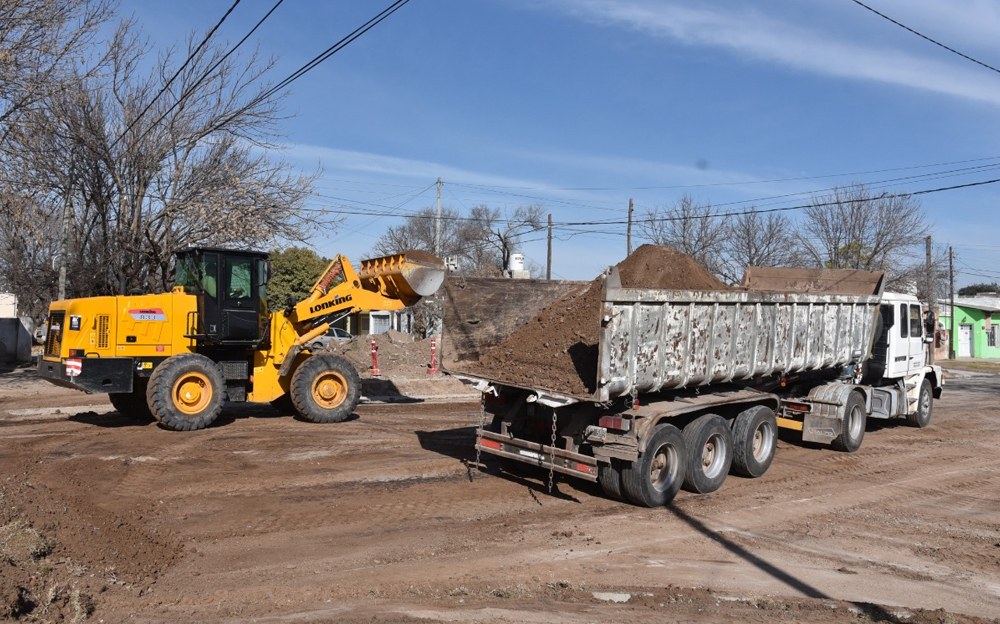 Concluido los trabajos de cordón cuneta, la Municipalidad de Marcos Juárez se encuentra realizando tareas de mejoramiento y nivelado de bocacalles en Quintana entre Ecuador y Venezuela.