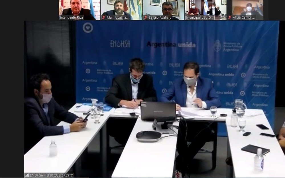 Participaron de la firma de dicho convenio: el Secretario de Obras Públicas de la Nación, Martín Gill y el presidente de ENOHSA Enrique Cresto.