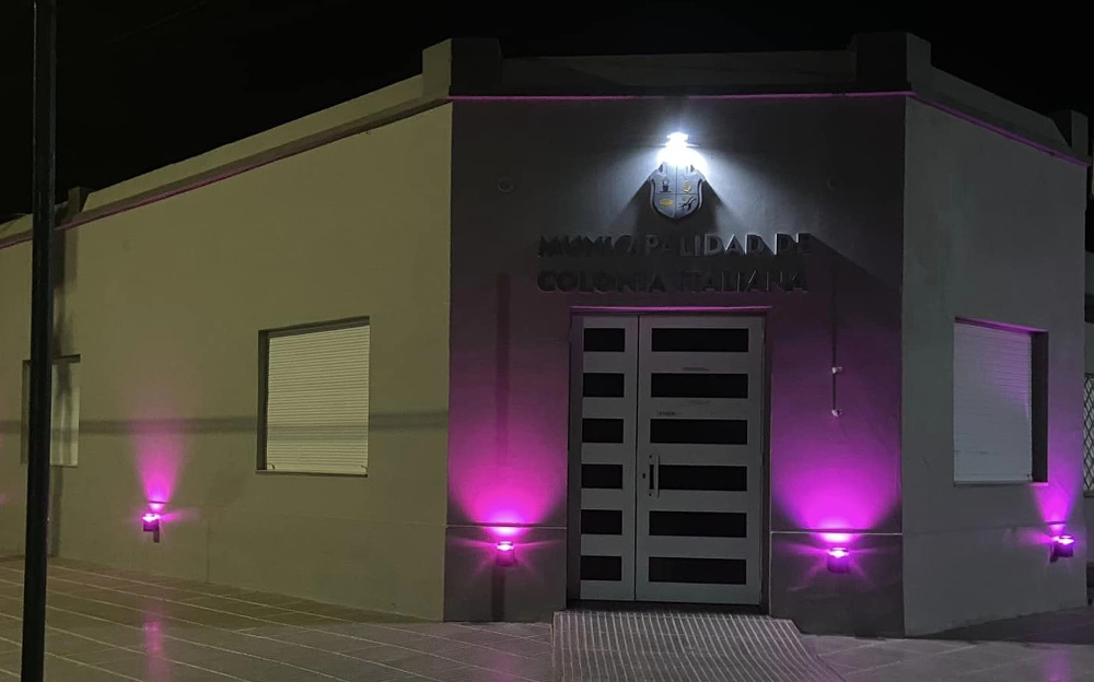 La jornada cerró con el encendido de las luces rosas sobre el edificio municipal