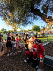 Papá Noel también visitó el Patio Alberdi, donde recibió las cartitas de los más pequeños, llenando cada rincón de ilusión y sonrisas.