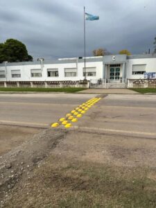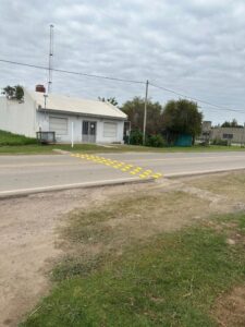 Después de diversas gestiones municipales, se colocaron reductores de velocidad en tres tramos de la Ruta Provincial que pertenece a la jurisdicción de la localidad, calle Islas Malvinas.