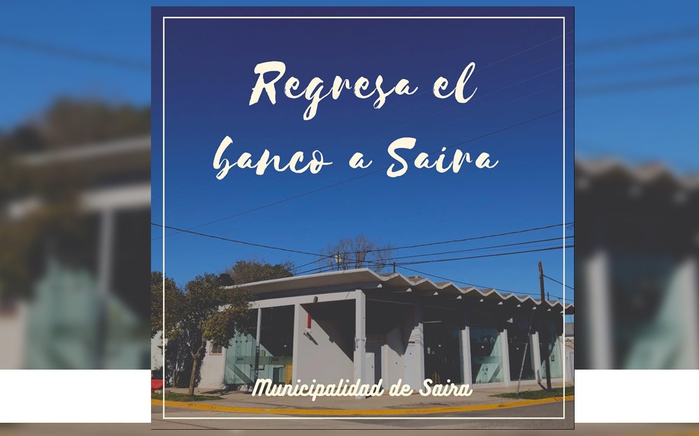 La Municipalidad de Saira considera que es fundamental que cada habitante tenga dentro de la localidad una sucursal funcional y activa para poder resolver sus cuestiones bancarias y financieras y que un jubilado habitante del pueblo debe trasladarse hasta localidades vecinas para poder percibir sus haberes representa un enorme riesgo en materia sanitaria y también en términos de seguridad para los adultos mayores.