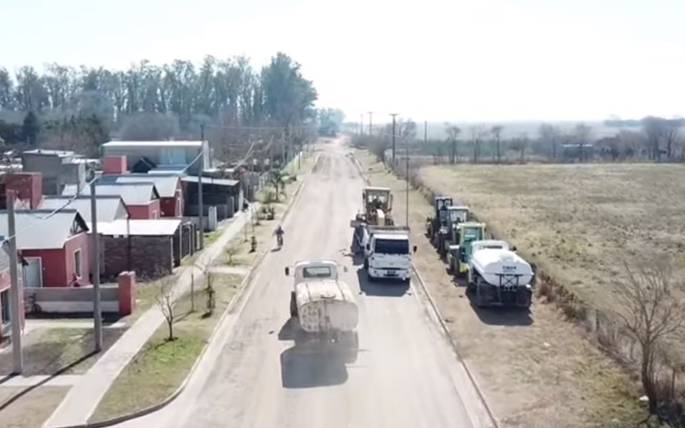 Desde la Colectora hasta el Acceso de tránsito pesado es pavimentada por la Dirección Provincial de Vialidad.