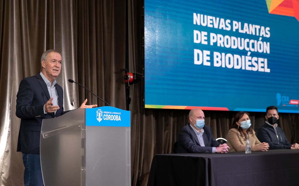 El gobernador, Juan Schiaretti, anunció este viernes la construcción de 20 nuevas plantas en la provincia para la producción de biodiésel desarrolladas por empresas cordobesas.