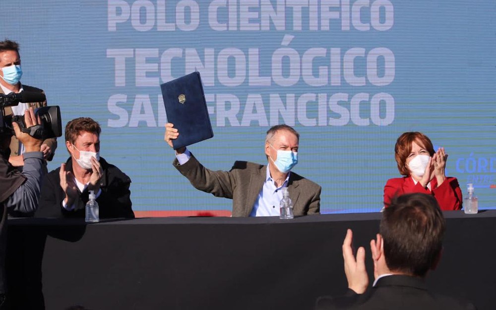 Durante el acto, se firmó el convenio entre la Municipalidad, el Ministerio de Ciencia y Tecnología provincial, la Cámara de Cluster Tecnológico San Francisco y la UTN para la creación del Polo Científico Tecnológico, con refrenda del gobernador. Asimismo, se firmó un acta de intención con empresas de San Francisco y se descubrió una placa fundacional. El intendente García Aresca declaró huésped de honor al gobernador. Juntos descubrieron una placa alusiva al Polo Científico Tecnológico.