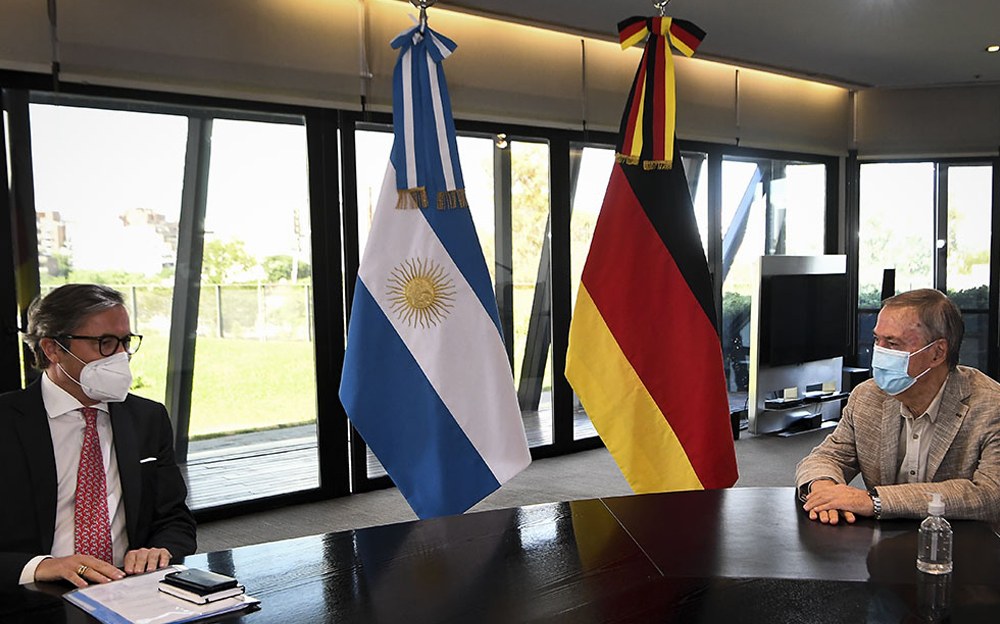 El encuentro entre el mandatario cordobés y el funcionario alemán, Ulrich Sante, contó con la presencia de la ministra de Coordinación, Silvina Rivero.