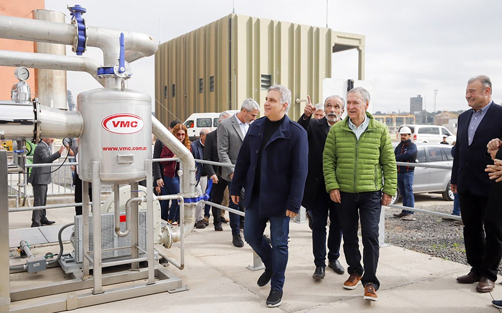 El gobernador Juan Schiaretti, acompañado por el intendente Martín Llaryora, dejó habilitado el nuevo sistema de generación de energía renovable a partir de biogás, ubicado en la planta de tratamiento de líquidos cloacales de Bajo Grande.