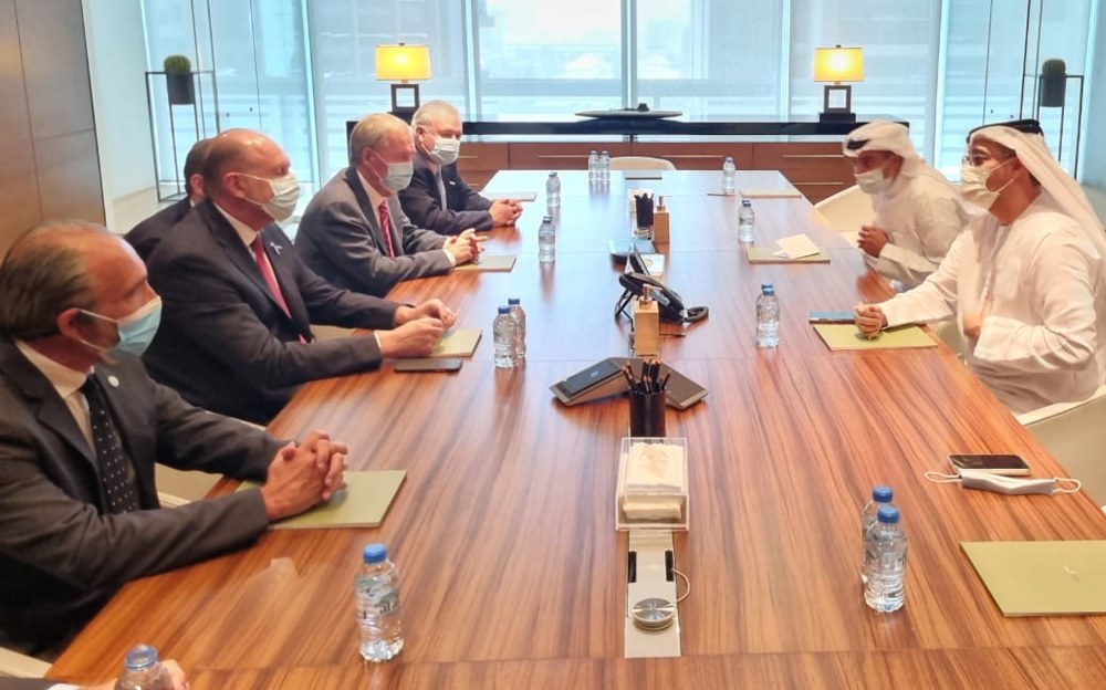 En el encuentro estuvo presente el ministro de Servicios Públicos Fabián López; el asesor del Gobierno Provincial, Hugo Testa; el embajador argentino en Emiratos Árabes, Jorge Molina Arambarri; el integrante del Board y Asesor Senior del Chairman de Al Dahra Agriculture Company, Hussain al Khateeri; el mananger comercial del Departamento de Granos, Badr Alfadli; y la directora para Proyectos Especiales, Aisha Alafifi.