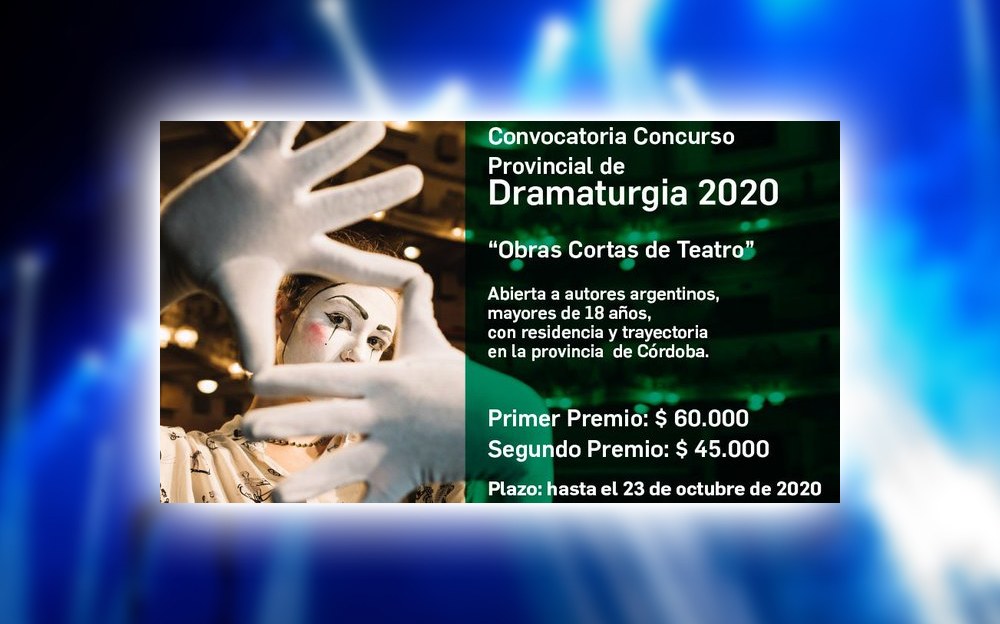 La Agencia Córdoba Cultura abrió la convocatoria al “Concurso Provincial de Dramaturgia – 2020″, dirigida a obras cortas de teatro. Podrán participar autores argentinos con residencia y trayectoria en la provincia, con una pieza teatral sin limitaciones temáticas ni estéticas.