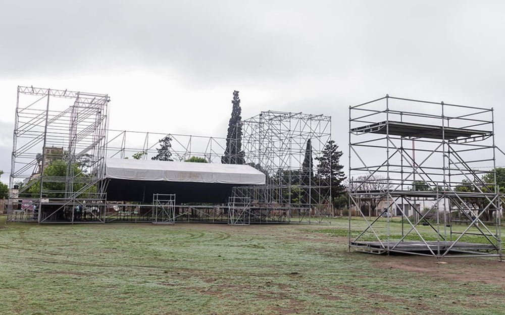 El predio del ferrocarril está acondicionado para ser la sede de la jornada de cierre de la XVIII Fiesta Nacional de la Pelota de Fútbol que se cumplirá este sábado desde las 16:30, en un gigantesco escenario erigido sobre el sector Este del espacioso lugar.