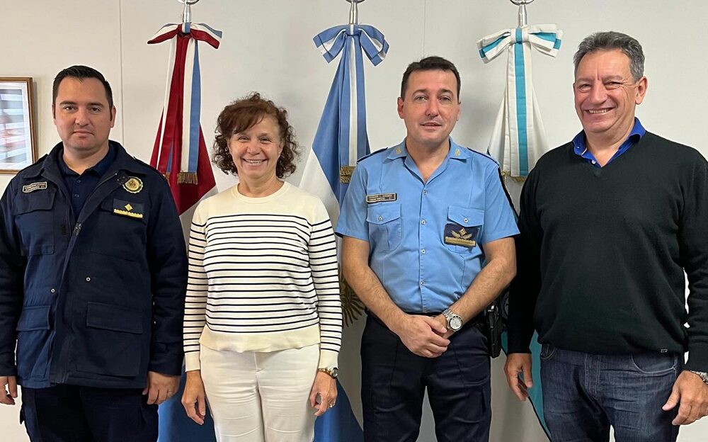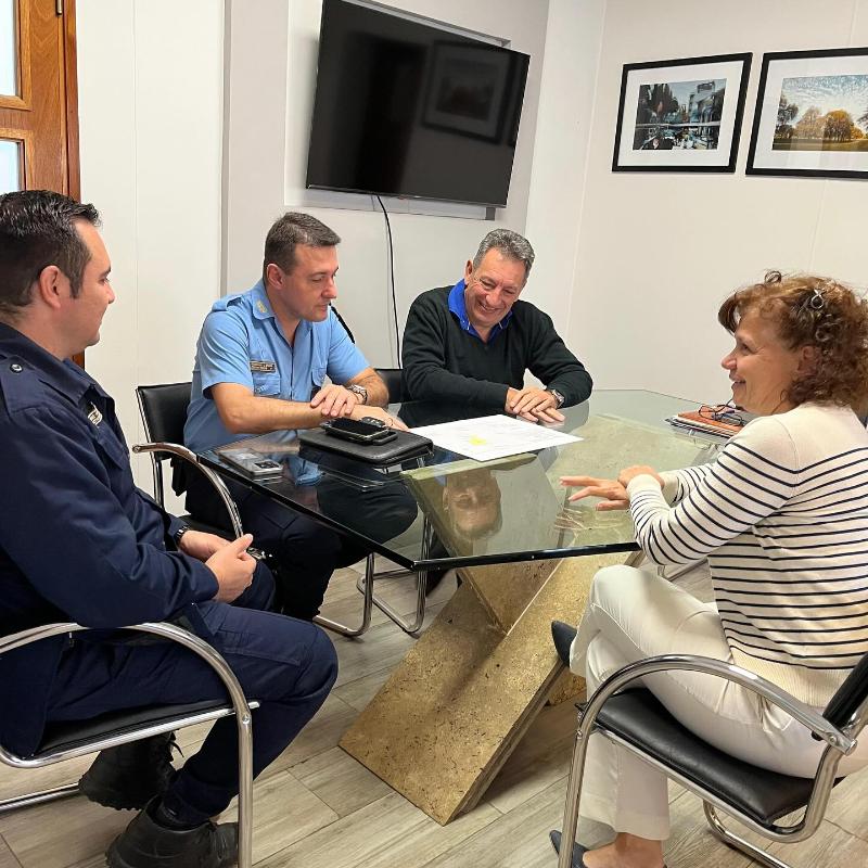 La intendenta Sara Majorel se reunió con ell Director Departamental Marcos Juárez, Comisario Inspector Germán Brenga, y el Subcomisario Gabriel Comba, de la Dirección de Tecnología y Telecomunicaciones.