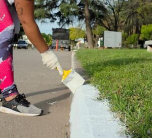 Se pintaron cordones e indicadores en frente del hospital y del cabildo municipal.