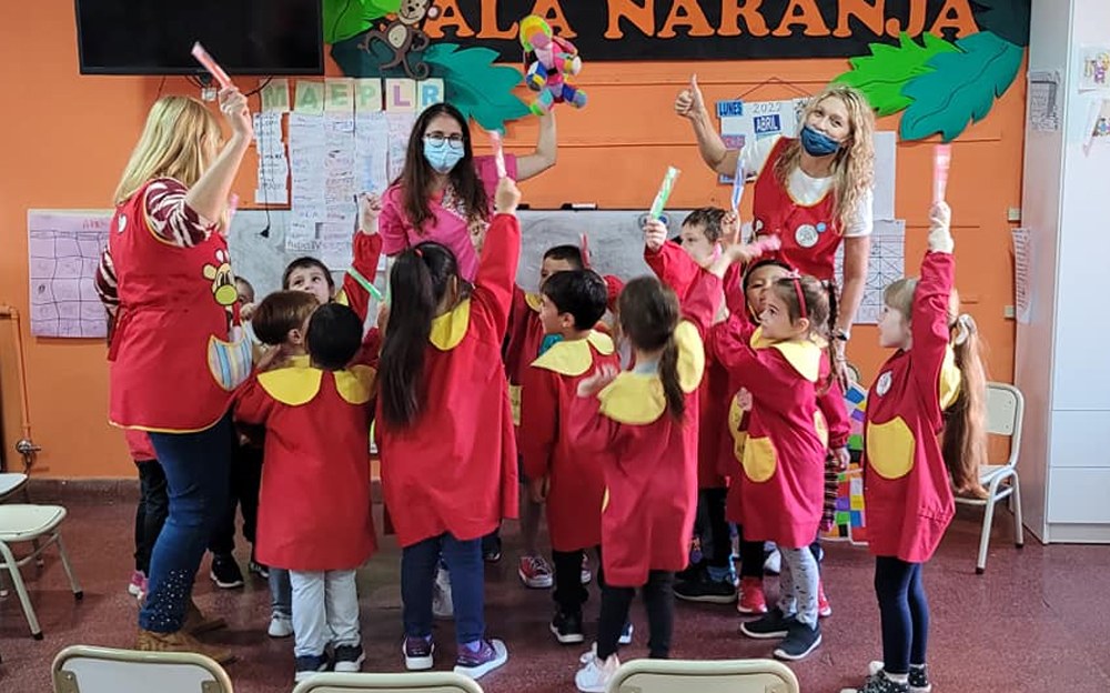 En una visita a la Salita Naranja, se entregaron cepillos a niños y niñas que aprendieron sobre higiene bucodental.