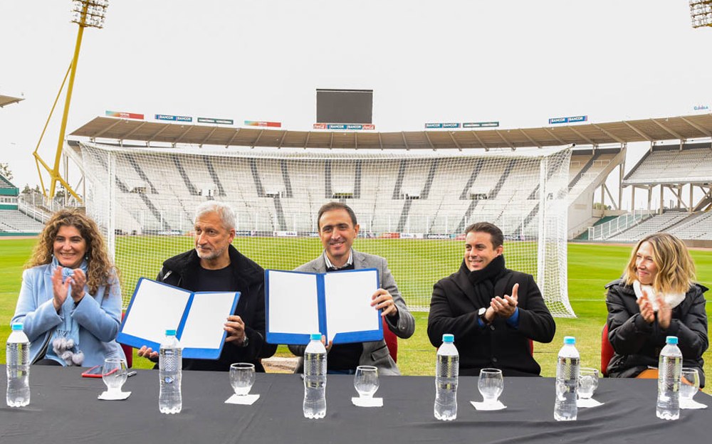 En el Estadio Mario Alberto Kempes, acompañados de otros funcionarios de Gobierno y representantes deportivos, Julián López, ministro de Justicia y Derechos Humanos, y Héctor Campana, presidente de la Agencia Córdoba Deportes, suscribieron un acuerdo de cooperación que dará comienzo al programa “Tomemos partido, por infancias libres de violencias”.