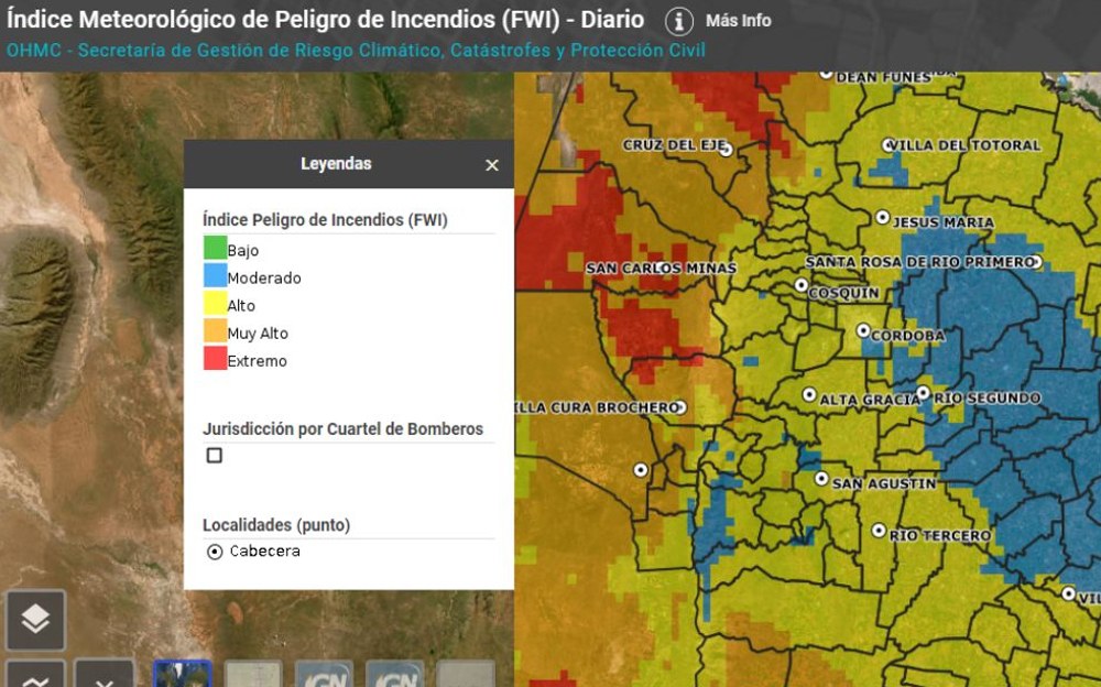 Los mapas están disponibles diariamente en el geoportal oficial Mapas Córdoba e incluirán información del Índice Meteorológico de Peligro de Incendios (FWI, por sus siglas en inglés), el Código de Humedad del Combustible Fino (FFMC) y un indicador de comportamiento del fuego conocido, como Índice de Propagación Inicial (ISI).