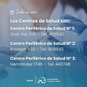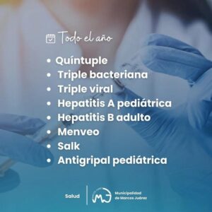 Vacunación en Marcos Juárez noticias 31 enero, 2024Triple Media Salud Pública de la Municipalidad de Marcos Juárez recuerda a la comunidad el cronograma de vacunación vigente.