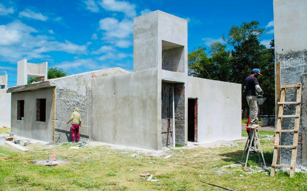 En todas las unidades habitacionales se está trabajando en el revoque externo para luego concluir con revoque interno, aberturas, pisos y pintura.